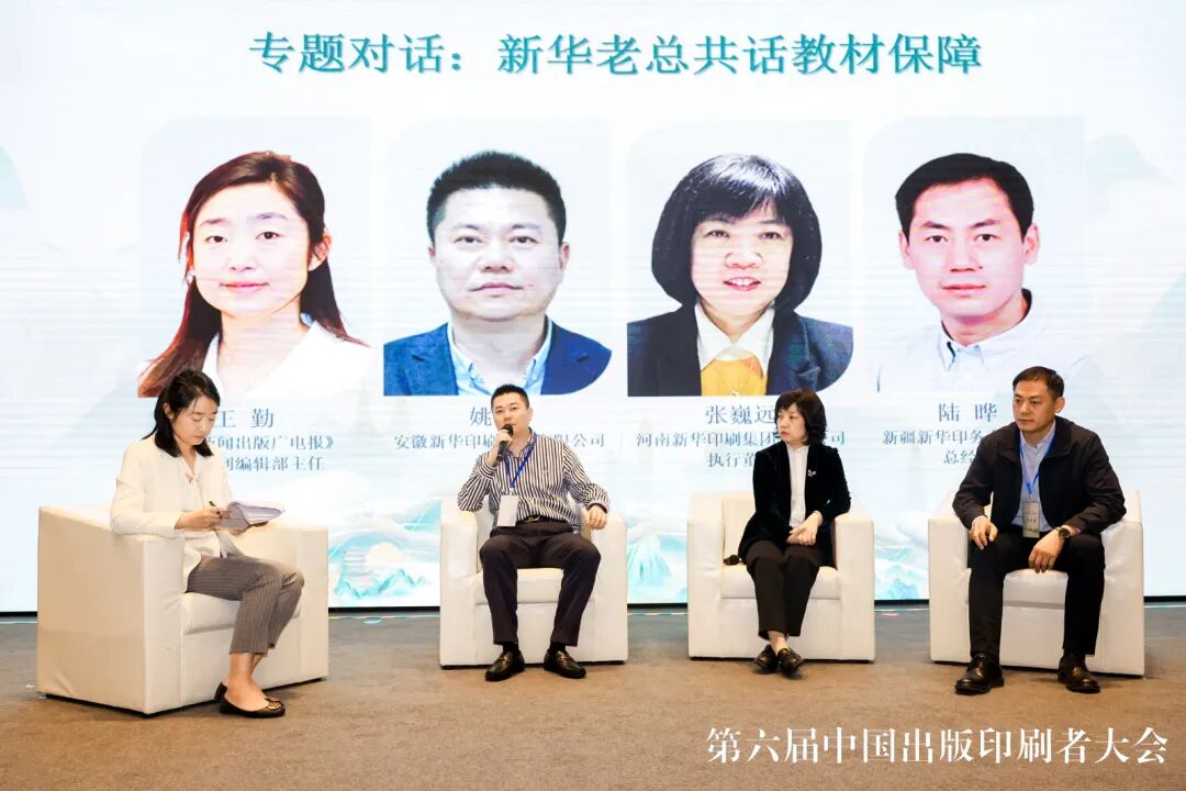 对话嘉宾:安徽新华印刷股份有限公司董事长姚峰(左二);河南新华印刷集团有限公司执行董事张巍远(右二);新疆新华印务有限公司总经理陆晔(右一)